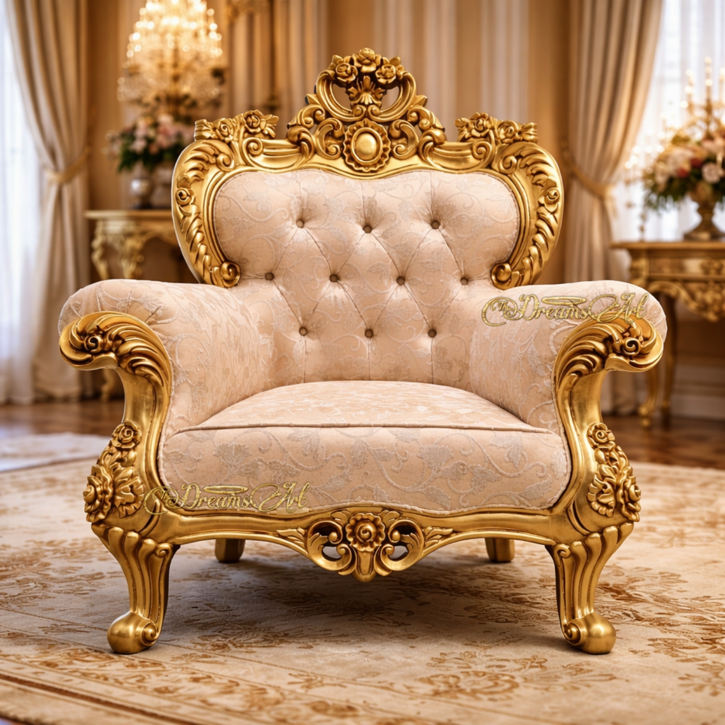 Made from premium solid wood, every sofa and armchair showcases intricate floral carvings, sculpted legs, and an elegantly crowned backrest that reflects royal Indian craftsmanship. The plush, high-density cushioning with premium fabric upholstery ensures exceptional comfort while maintaining an opulent appearance.