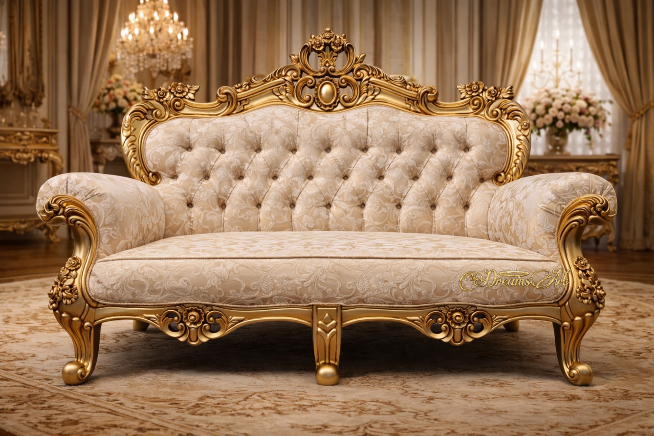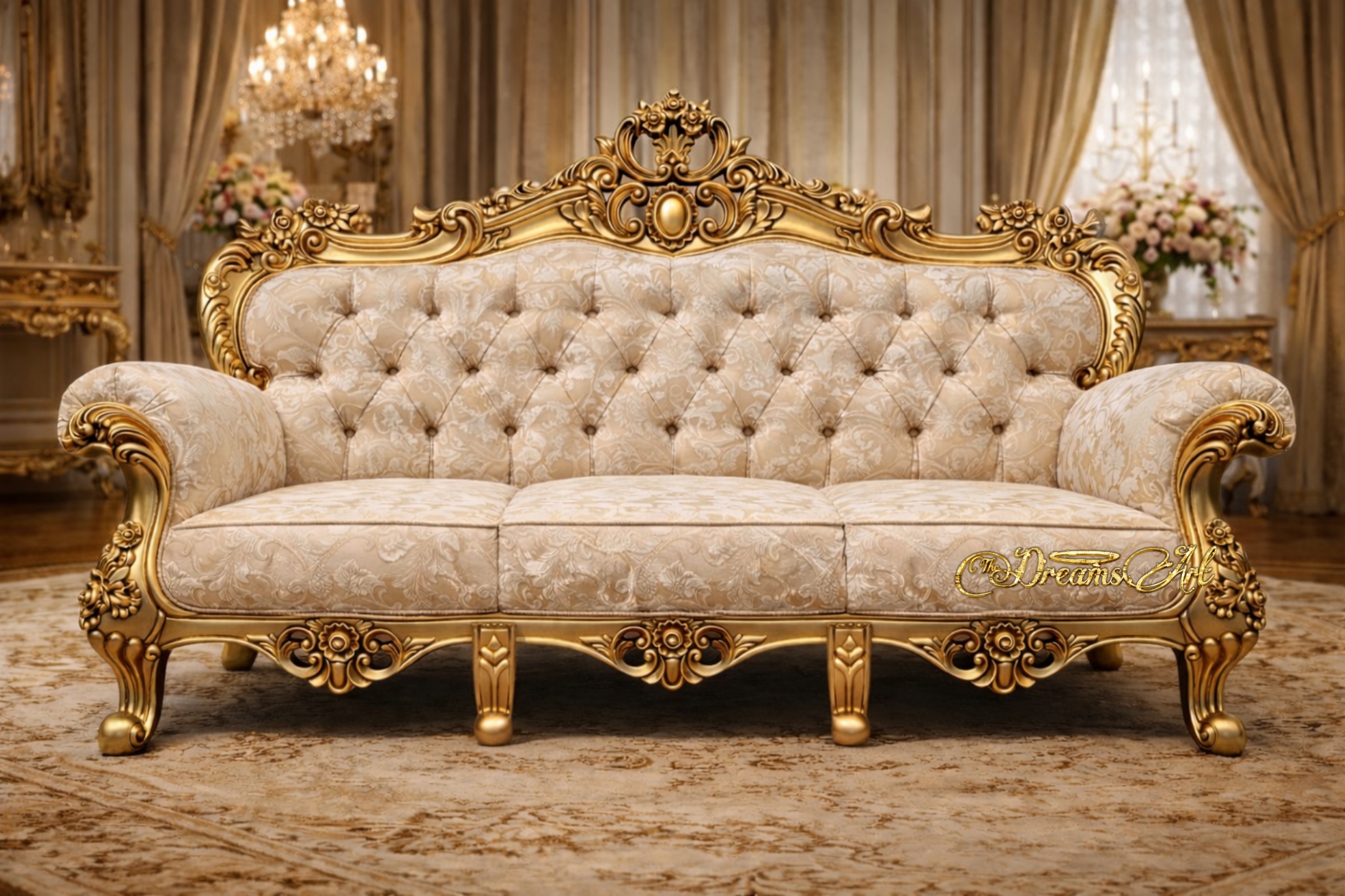Buy luxury hand-carved living room sofa set made from premium solid wood. Royal design, plush upholstery & Saharanpur craftsmanship by The Dreams Art Furnitures.