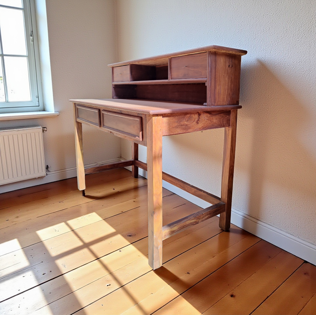 Each desk is individually handcrafted by skilled artisans, highlighting the natural grain of the wood and ensuring a durable, premium finish that ages gracefully over time.
