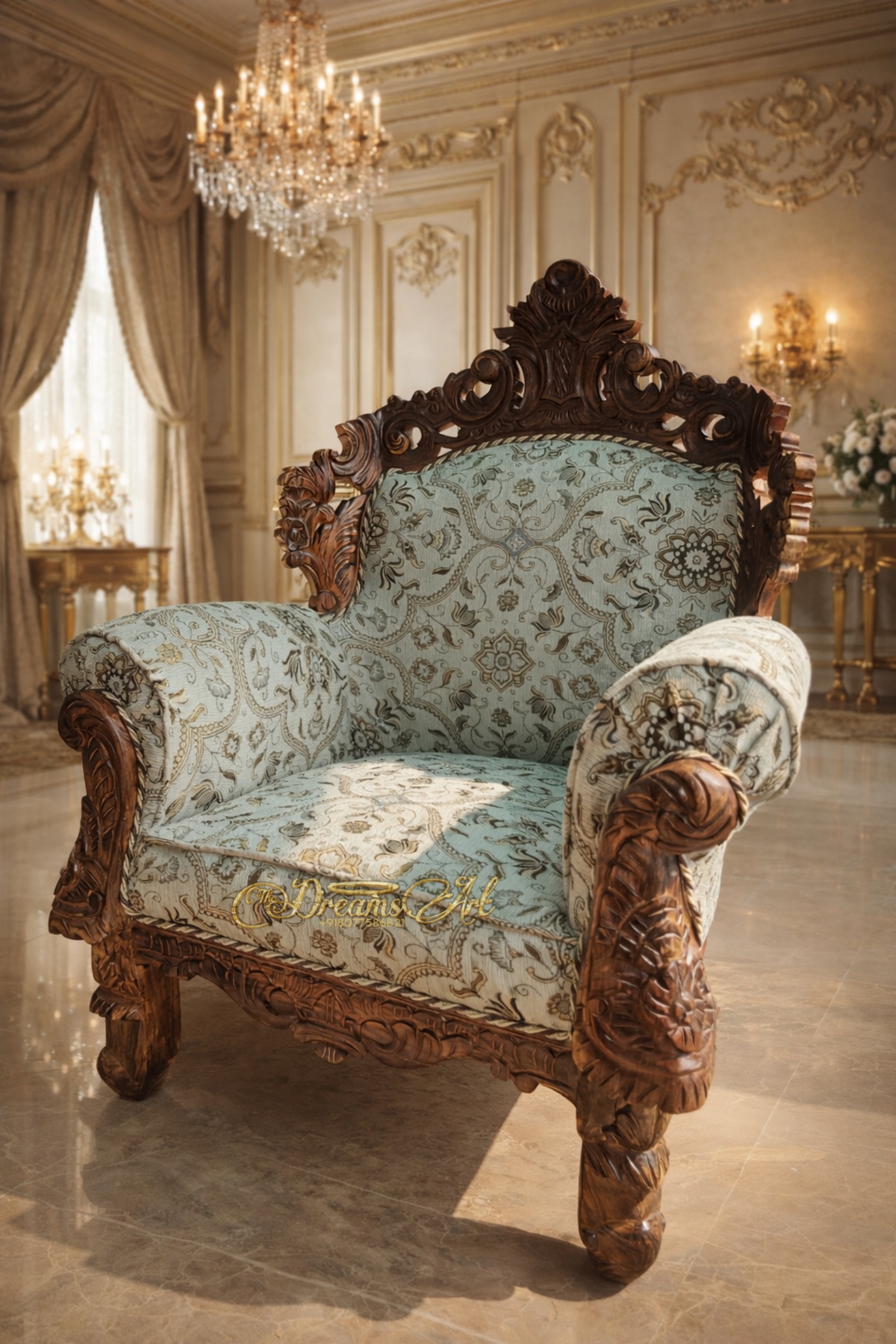 The Royal Heritage – Hand-Carved Classic Luxury Neem Wood Sofa WS-2016