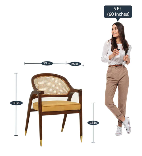 - PRIMARY MATERIAL: Soft-Touch Fabric, Frame Material: Solid Teak Sagwan Wood With Natural Woven Rattan Caning, Legs: Solid Wooden Legs With Metal Foot Cover Cap.